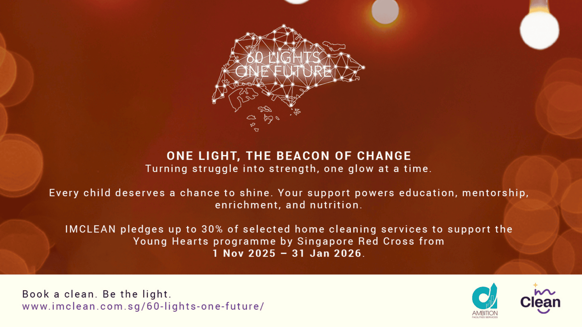 • Pledging 30% of proceeds from home and spring cleaning services between 1 November 2025 and 31 January 2026 to support 60 Lights, One Future.