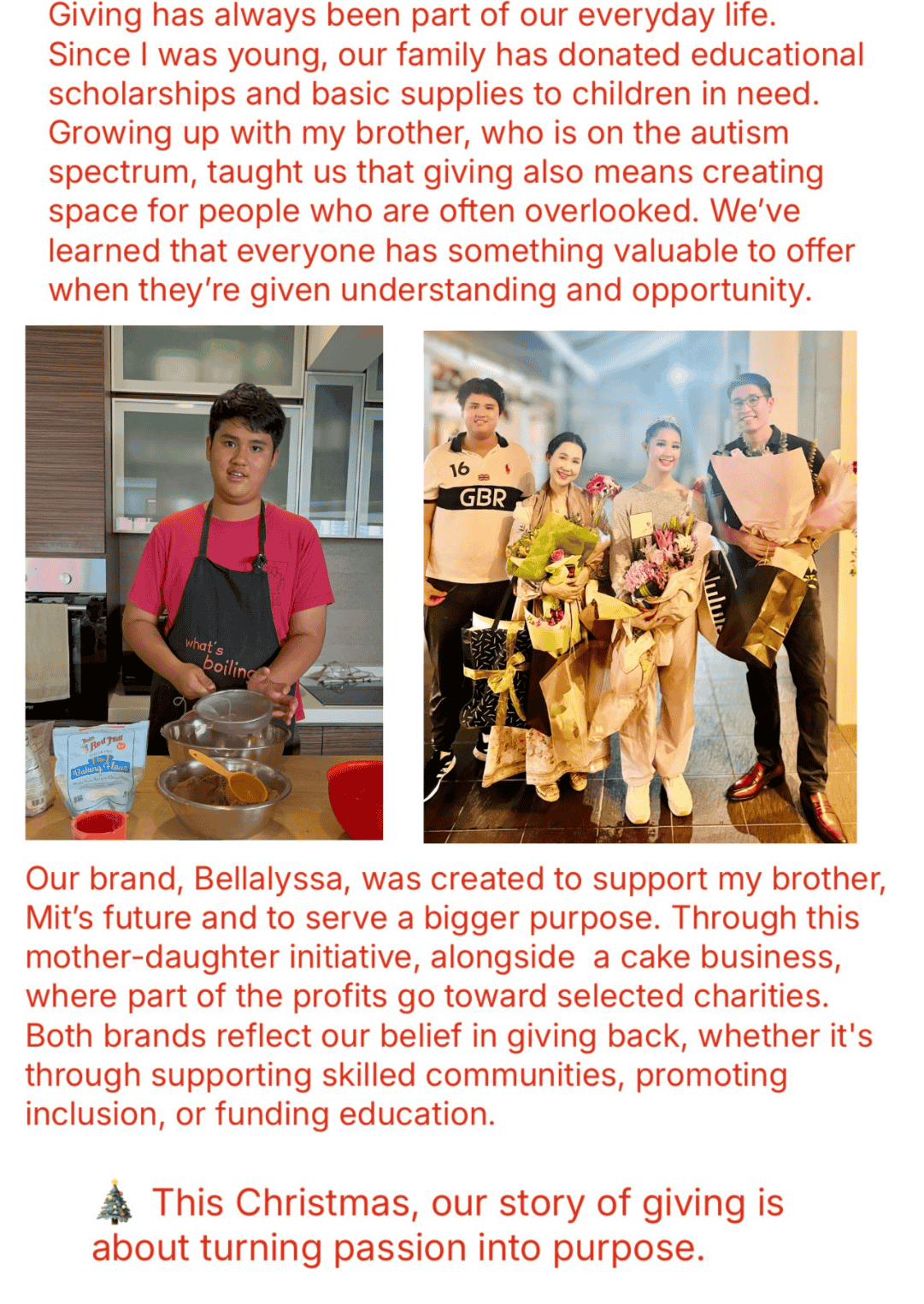 Their message is simple: giving isn’t about how much you have, but how deeply you care. Through every crafted piece, every bake, and every shared moment, Bellalyssa is lighting the way for others to find joy in giving.